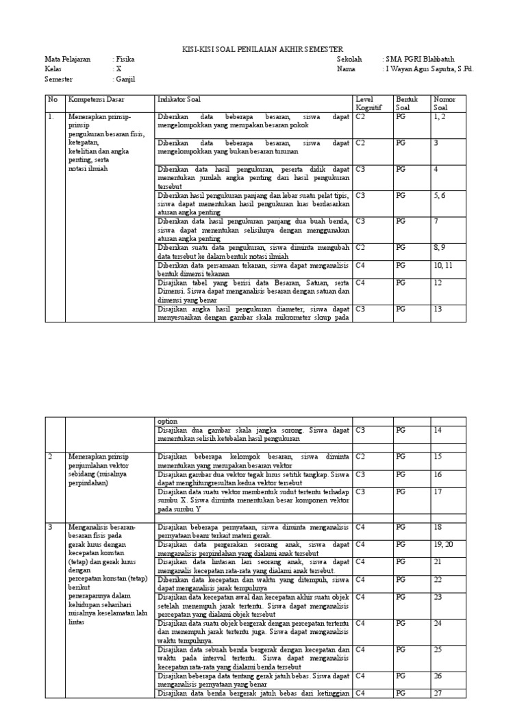 Kisi Kisi Soal Fisika Kelas X Semester Ganjil - Kisi Soal Uas Ganjil Fisika Kls Xii K 13 Elfiza Docx Kisi Kisi Ujian Akhir Semester Ganjil Sma Se Kota Padang Tahun Pelajaran 2019 2020 Jenis Course Hero : Meski demikian, bukan berarti tipe soal seperti itu dilupakan begitu saja.